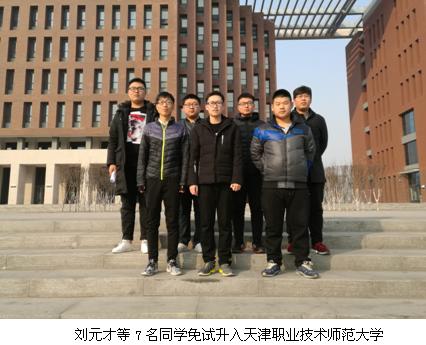 根据《市教委关于继续做好我市高职院校学生技能竞赛获奖选手免试升本工作的通知》(津教委专〔2013〕5号)、《关于办理学生技能竞赛获奖选手免试升本相关手续的通知》(津教委专函〔2017〕36号)、《市教委关于印发技能大赛获奖选手免试升入天津中德应用技术大学学习实施办法的通知》(津教委〔2017〕68号)文件精神,我院14名技能大赛获奖选手获得免试保送本科院校学习的资格。获得2017年国赛相应赛项一、二等奖及2017年市赛相应赛项一等奖的学生,择优免试升入天津职业技术师范大学;获得2017年国赛相应赛项三等奖及2017年市赛相应赛项二等奖的学生,择优免试升入天津中德应用技术大学。