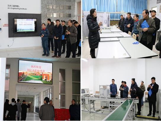 我院按照海河教育园区的要求,学院领导及相关院系高度重视,提前做好接待准备,安排好现场讲解与优质资源展示资料。19日上午,在教务处王宝龙副处长的陪同下,各院校领导20余人按计划参观考察了我院实训中心车间、“教学做一体化教室”、工业机器人校内实训基地、智能家居物联网实训基地、电梯实训基地、艺术类专业校内实训基地等场所。