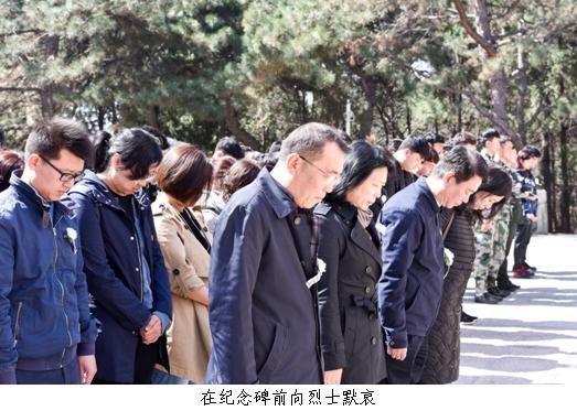 青松挺立,翠柏低垂,烈士陵园一片肃穆,师生们怀着崇敬而沉重的心情,在烈士纪念碑前举行谒陵仪式,院领导带领大家向烈士纪念碑敬献了花圈,向烈士致敬并默哀。
