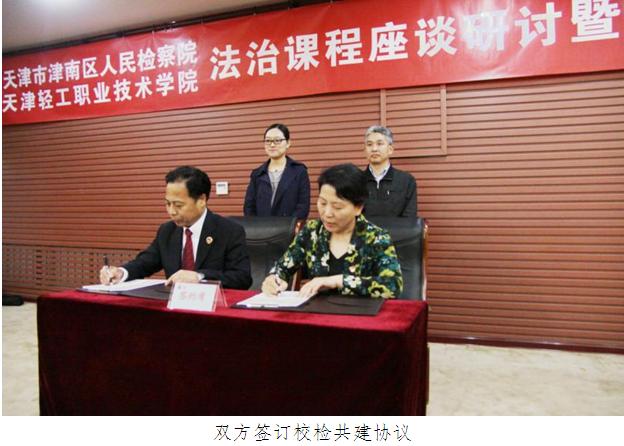 学院党委书记曹燕利、津南区人民检察院副检察长孟祥福共同签订校检共建协议,下一步将继续开展普法教育基地建设,共同开展预防学生违法犯罪、增强学生法治观念的活动,切实提高共建的层次与水平,推动双方共同发展。 |