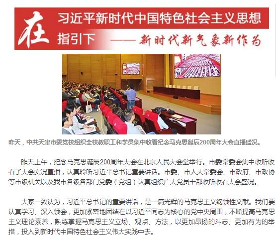天津市各级党组织和广大党员干部认真收听收看纪念马克思诞辰200周年大会直播盛况