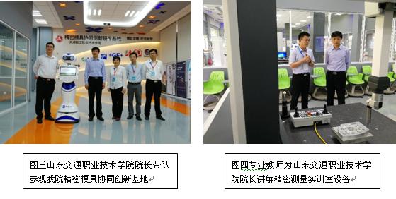 今天共接待五批来宾,机械工程学院院长周树银、实训中心主任张炳德、精密模具协同创新中心主任苏越、机械工程学院副主任杨国星等接待了来访客人。由专业教师讲解并演示精密模具智能生产线原理及加工过程、鲁班工坊沙盘、专业一体化教室,技能大师讲解了大师工作室团队、技术服务、学生技能大赛等,展示了我院先进的教学理念、实训设备及教学成果。其中印度金奈理工学院(Chennai institute of technology India )校长SRIRAM看到鲁班工坊沙盘展示,赞不绝口,说做的很漂亮,给他很熟悉的感觉;山东交通职业技术学院王心院长通过参观体验精密模具协同创新研发基地,深入地了解先进智能制造理念及发展趋势,对我院先进办学理念与特色、校园文化建设表示赞赏。