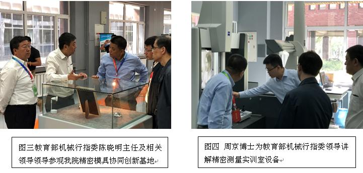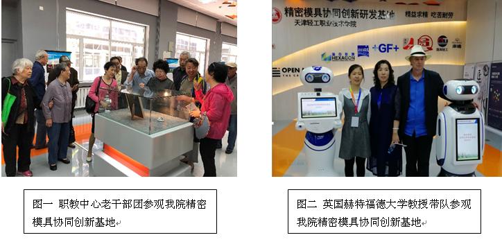精密模具协同创新研发基地今天接待了职教中心老干部团、教育部机械行指委陈晓明主任及相关领导、英国赫特福德大学Marty st. James教授等来宾,周京博士讲解精密模具智能生产线原理及加工过程,技能大师史清卫讲解了大师工作室团队、技术服务、学生技能大赛等,展示了我院先进的教学理念、实训设备及教学成果。职教中心老干部访问团代表对我院新建成精密模具协同创新研发基地表示赞赏;英国赫特福德大学的教授们进行参观交流后,表示精密模具协同创新研发基地的建设将为我院与英国相关高职院校建立合作关系起到极大的促进和推动作用;教育部机械行业指导委员会领导对我院发挥模具设计与制造专业优势,探索产教融合、校企合作共建的这一产学研合作平台给予好评。
