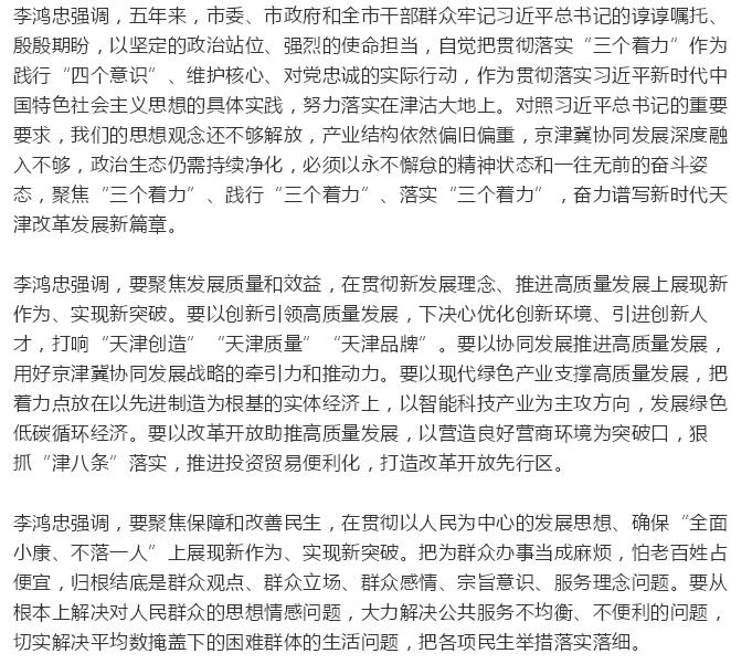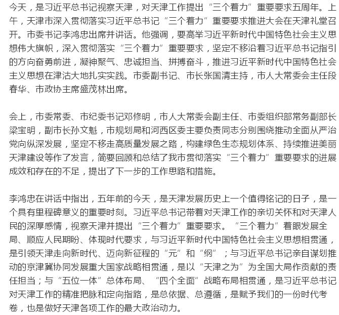 天津市深入贯彻落实习近平总书记“三个着力”重要要求推进大会召开