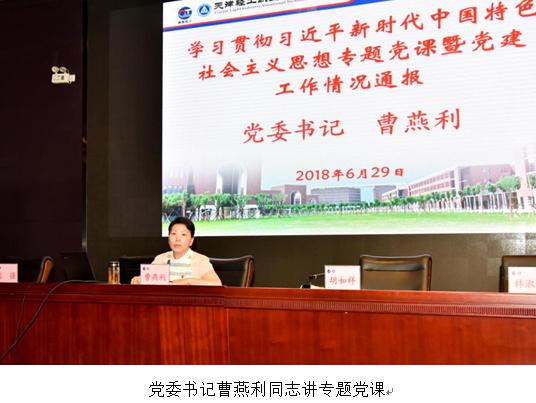 曹燕利同志向全体党员汇报了院党委在习近平新时代中国特色社会主义思想指导下进行的生动实践,并结合学院改革发展的重点任务同大家进行了深情交流,一是要深刻领会习近平新时代中国特色社会主义思想的重大意义;二是要充分发挥党委领导核心作用,用新思想指导学院创新发展新作为;三是要担当作为,对标争先,圆满完成全年工作目标。曹燕利同志强调,各党支部、全体党员干部和广大师生,要准确把握习近平新时代中国特色社会主义思想的深刻内涵和精神实质,切实把思想和行动统一到上级的要求和学院党政的部署上来,增强紧迫感、使命感和责任感,把学习成果转化为指导实践、推动教育教学和管理服务工作的强大思想武器,不忘初心、牢记使命,振奋精神、主动担当,以实际行动履行好岗位职责,为推进学院高水平创新发展做出新的贡献。