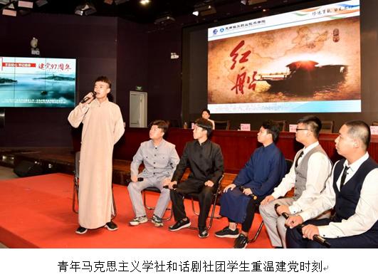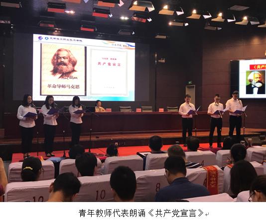 她带领大家回顾了自马克思主义诞生、中国共产党成立、改革开放到新时代的伟大历程,六名青年教师现场诵读了《共产党宣言》经典片段,七名青年马克思主义学社和话剧社团学生为大家重现了中国共产党成立的伟大时刻,观看了从建党到新时代的奋斗征程纪实片,并围绕“八个明确”和“十四个坚持”对习近平新时代中国特色社会主义思想和党的十九大精神进行了深入解读,展现了习近平总书记描绘的新时代、新思想、新目标、新征程。