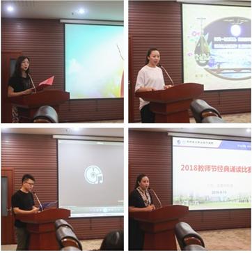 比赛现场,来自我院的多名教师诵读了《迢迢牵牛星》、《春江花月夜》、《在秋天,说出祖国的名字》、《我们》、《致橡树》、《一片槐树叶》、《慈祥的目光》、《滕王阁序》等,诵读篇目涵盖古今,内容丰富多彩,有经典诗词、散文札记,有红色经典诗文,也有对祖国、对家乡的赞美与祝福。