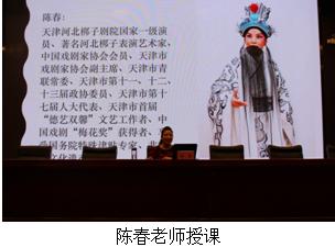 讲座开始之前,报告厅早已座无虚席,师生代表满心期待着本次讲座的老师――著名河北梆子表演艺术家,天津市戏剧家协会副主席陈春老师为学校师生进行一场别开生面的专题讲座。讲座开始时由学生工作部孙熙烛老师介绍了陈春老师的艺术生平:陈春老师为天津河北梆子剧院国家一级演员,著名河北梆子表演艺术家,中国戏剧家协会会员、天津市戏剧家协会副主席、天津市青联常委,天津市第十一、十二、十三届政协委员、天津市第十七届人大代表、天津市首届“德艺双馨”文艺工作者、中国戏剧“梅花奖”获得者,享受国务院特殊津贴专家。