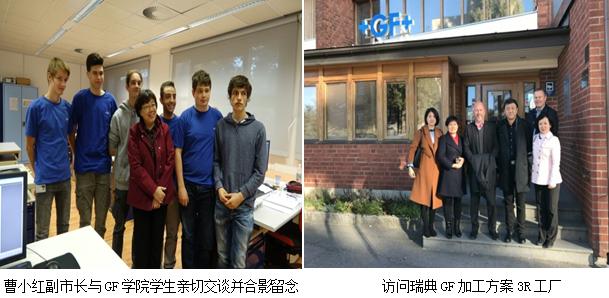为落实天津市委关于做大做强做优职业教育的相关要求,以及天津市人民政府办公厅印发的“关于深化产教融合实施方案的通知”和《关于鼓励社会力量参与职业教育办学激发职业院校办学活力的指导意见》,强化产教融合,吸引世界一流企业与我市合作,2018年10月21日至23日,天津市曹小红副市长一行访问了位于瑞士日内瓦的GF加工方案公司总部,并参观了GF电加工工厂及GF职业培训学院。
