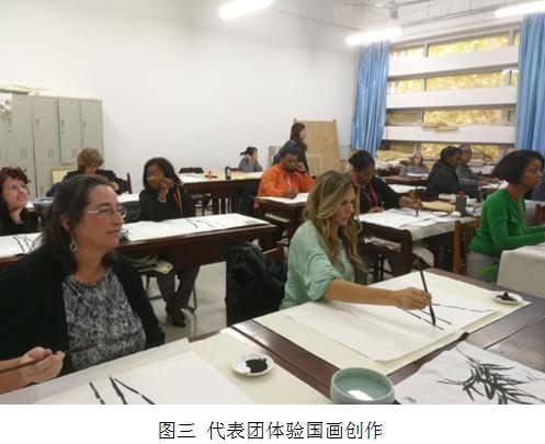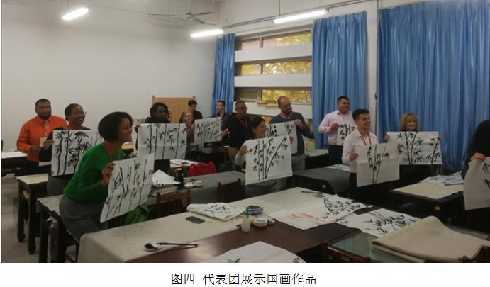 代表团在我院工作人员的带领下,首先参观了我院的鲁班工坊建设·体验馆。随着听取讲解及观摩现场展品,逐步了解了鲁班工坊的缘起与内涵,每个鲁班工坊的合作院校与专业领域,我国政府对鲁班工坊的重视与支持,以及鲁班工坊的未来展望。随后,到艺术工程学院参观了新媒体艺术设计实训室、陶艺设计制作实训室、三维打印实训室及装饰施工与材料实训室。最后,代表团成员尝试国画创作,感受中国传统文化艺术的精妙与美好。