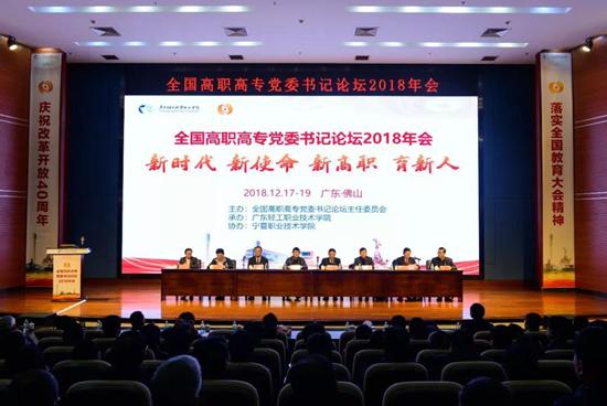 2018年12月17日-19日,全国高职高专党委书记论坛2018年会在广东轻工职业技术学院召开,教育部思想政治工作司司长魏士强出席并作报告。全国150多所国家示范和骨干高职院校党委书记、党务和思政工作者参加了会议,学院党委书记曹燕利、党委副书记、副院长胡如祥一行4人参加了会议。
