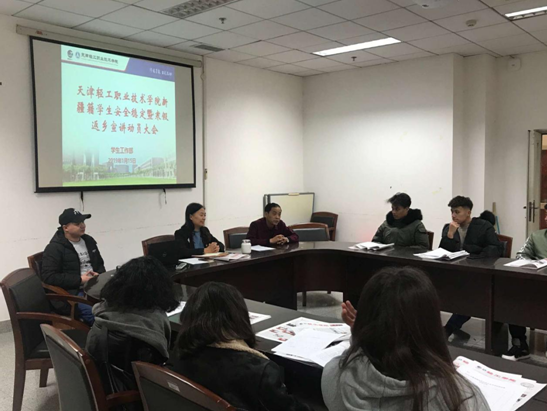 为维护祖国统一和民族团结,落实上级部署,培养学生爱国主义情怀, 1月15日,我院组织开展了2018年新疆籍学生安全稳定暨寒假返乡发声亮剑宣讲动员部署会,学院纪委书记韩淑君、学生处副处长张桂江、少数民族专职辅导员阿卜老师及全体在校新疆籍学生参加会议。会议由张桂江副部长主持。