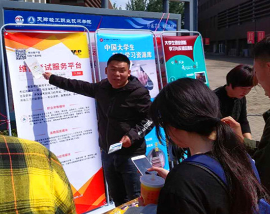 4月25日在我院一食堂广场举办了读书节系列活动讲解活动。内容为“胸藏文墨怀若谷,腹有诗书气自华”读书竞赛、“中国知网电子资源使用”、”码上寻书”比拼活动、“天津知网公众号宣传推广活动”、“共读共享,学思践悟”共读活动、“大学生就创业知识技能讲演”。