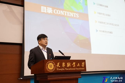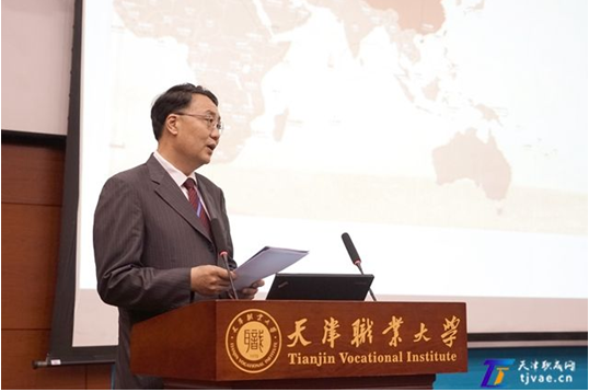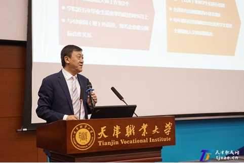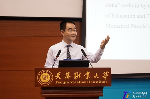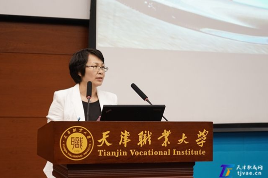 图为天津渤海职业技术学院院长于兰平作交流分享