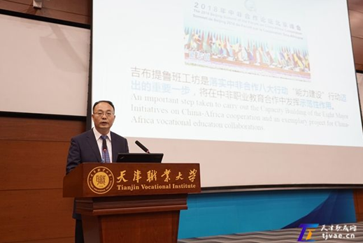 天津铁道职业技术学院党委书记、院长于忠武作了《落实中非合作八大行动,建设非洲首个“鲁班工坊”》的交流分享。他表示,非洲首个鲁班工坊——吉布提鲁班工坊将着力打造成为中非职业教育合作的新桥梁、新纽带、新亮点,为非洲其他鲁班工坊建设探索提供一个可借鉴、可复制、可推广的新模板,同时在非洲鲁班工坊建设中发挥示范引领作用,为服务“一带一路”倡议做出新的更大的贡献。