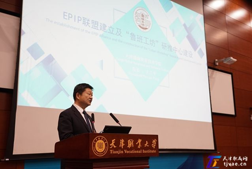 天津市教育委员会副主任吕景泉作了题为《鲁班工坊——中国职业教育国际知名品牌》的主旨报告。吕景泉首先介绍了天津职业教育的概况,天津作为“国家现代职业教育改革创新示范区”示范引领作用的发挥,以工程实践创新项目教学模式为重要内容的教学成果获得中国职业教育领域首个国家教学成果特等奖。