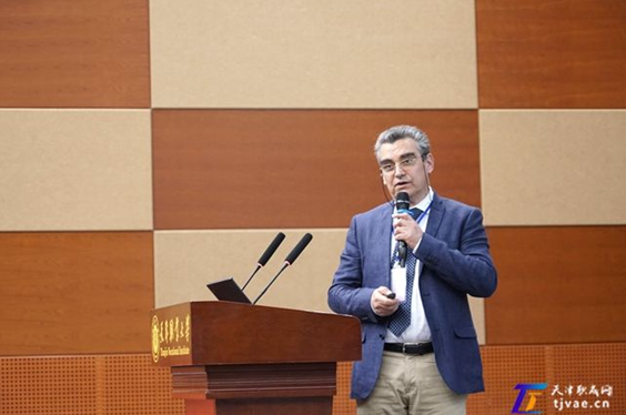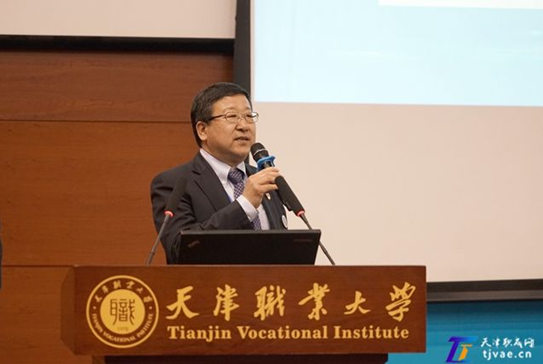 图为天津市教育委员会副主任吕景泉作主旨报告
