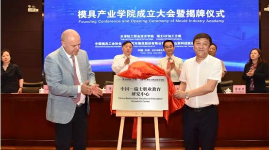 随后,举行模具产业学院、瑞士精密制造专业师资培养培训基地、中国天津职业院校师生海外(瑞士)拓展基地、中国一瑞士职业教育研究中心揭牌仪式。