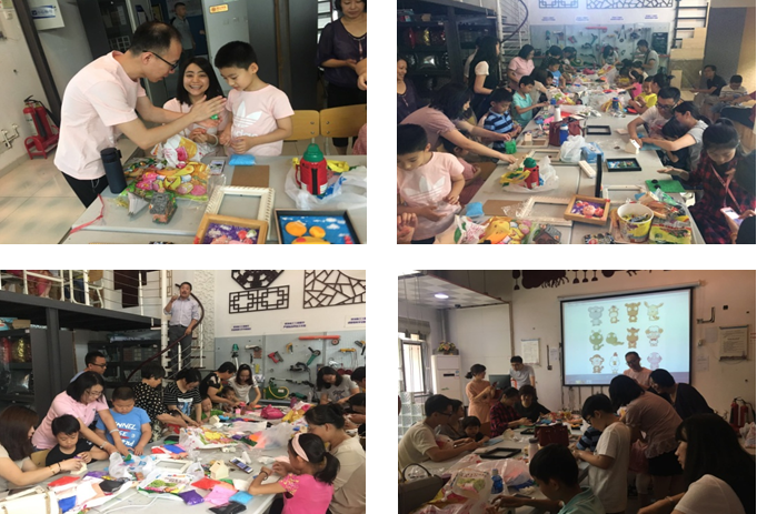 活动前工会干部精心准备,购买了活动用具、瓶装水和小零食。学院工会于主席为孩子们送上节日祝福。活动现场,全国民间文艺家会员、天津工艺美术大师郭刚老师和艺术工程学院的成琨老师为孩子们介绍工具使用方法及制作技巧,指导家长和孩子们一起动手、一起合作,孩子们发挥自己创意,用彩泥制作了专属于自己的梦幻小屋和镜架摆台。活动最后,艺术学院韩晓鸣老师为每个家庭和完成的作品拍了合影,打印装框作为留念。