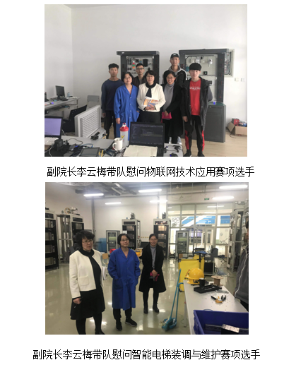 2019年11月14日上午,学院副院长李云梅及教务处相关老师到电子信息与自动化学院各赛项培训现场慰问了参加2019年天津市职业院校技能大赛的参赛选手和指导教师,转达了学院领导对参赛师生的关心和问候。