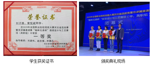 2019年12月13日至15日,“格林兄弟杯”2019年河北省(京津冀)职业院校技能大赛在河北省邢台职业技术学院举办,新利18平台艺术工程学院由刘建伟主任做领队,赵志强、孙嘉庆作为指导教师,带领2018级服装设计与工艺专业刘子维、常悦斌两位学生参加了高职组服装设计与工艺比赛赛项,与来自北京、河北省职业院校参赛选手展开了激烈角逐。本次大赛赛项内容为服装设计和服装制版与工艺两个模块组成,以综合成绩决定比赛名次。两名学生经过认真准备,艰苦鏖战,最终荣获一等奖第一名的优异成绩。