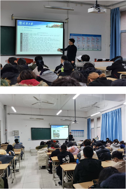 叶武教授毕业于天津美术学院,是天津市第一个获得设计学硕士的专业技术人员。讲座伊始,叶教授便为同学们深入解读了城市家具的概念、涵盖的范畴、在社会生活中存在的意义及必要性,从天安门、古罗马斗兽场开始讲述了从古至今城市家具的共同点。讲座深入浅出、内容丰富,期间还穿插播放了城市家具的相关视频,使学生更加直观的感受到城市家具在城市建设中的重要作用。叶教授和蔼可亲、声情并茂的讲解很快便把学生带入其中,使学生犹如漫步在城市家具的长廊中,讲座过程中的互动交流充分调动了学生们的学习积极主动性,同时还为学生分享了天津大学建筑学院学生的优秀作品,使学生们感受到他们设计作品中的严谨、细腻。