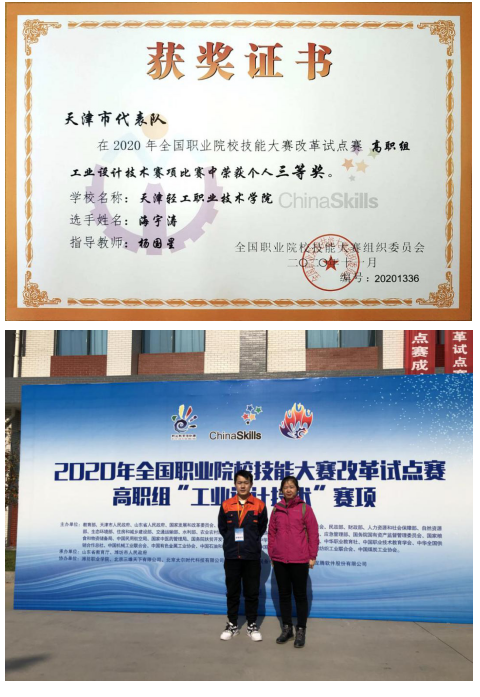 11月6日至11月10日由教育部主办的2020年全国职业院校技能大赛改革试点赛高职组“工业设计技术”赛项在山东潍坊职业学院举行,来自全国各省市28支队伍参加了本次比赛。我院机械工程学院选派2018级模具设计与制造1班学生海宇涛,指导教师杨国星组成的天津市参赛队进行比赛,荣获三等奖。
