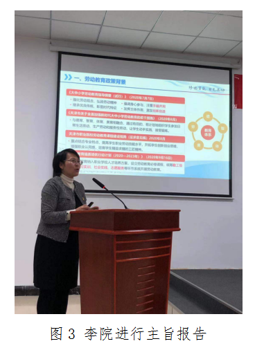 随后李院进行题为《新时代高职院校劳动教育体系初探——以新利18平台为例》的主旨报告。报告中李院向与会师生阐述劳动教育政策背景及习近平主席对劳动教育的相关指示,详细阐述我院劳动教育建设成果并提出对劳动教育问题的思考。与会人员,表示受益良多。