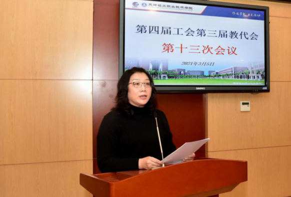 大会还听取了学院财务处处长、学院工会经费审查委员会主任王丽云关于《学院2020年公务接待费支出情况的报告》、《学院工会2020年经费审查报告》,并向各位代表通报学院2021年资金情况。