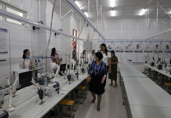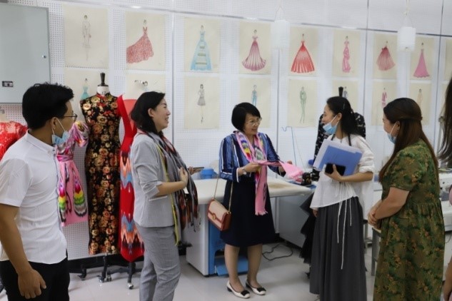 最后学院学访交流团对和田职院进行了参观考察,重点走访了我院教师所在的两个系部,参观了指导建设的工程技术系汽车检测与维修、工艺美术系服装设计与工艺两个实训中心。