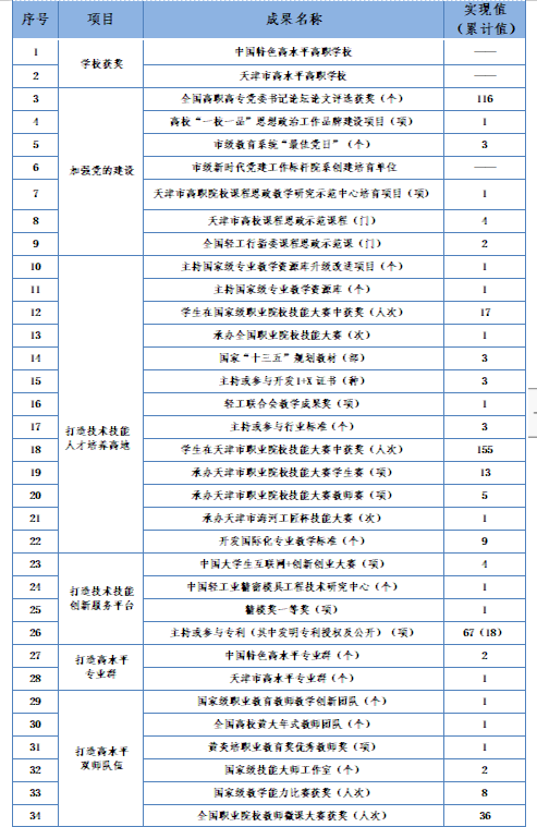 双高中期建设 标志性成果表