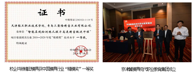 新利18平台始终秉承“以共赢为基础,以资源求合作,以服务获支持”的校企合作理念,践行深化产教融合、校企合作。创建“三级贯通式”校企合作体制机制,开创了各专业群与行业龙头企业在战略层面合作的“四中心一融入”合作模式。与校企合作董事会成员单位在“产、学、研、创、训、服”六方面进行深度合作,构建“六位一体”的校企合作育人体系,以“共生、共存、共享、共赢”成为校企命运共同体。2011年以来,学院与瑞士GF集团、德国蔡司公司等世界知名企业共建了国内首条精密模具智能制造生产线、模具行业首个精密模具协同创新中心,建成具有混合所有制特色的产业学院和实体化运行的京津冀模具现代职业教育集团,2021年,获得行业最高奖“精模奖”一等奖,推动了精密模具技术创新服务;校企合作治理模式更加科学和高效。密接技术进步和产业变革,模具、光伏等七大专业群不断拓展合作领域,形成并固化了以21个龙头企业为核心、近500家企业为外围的校企协同大合作圈。同时,服务乡村振兴、支持西部经济和职业教育发展,形成了“一体两翼”的产教融合、校企合作办学格局。