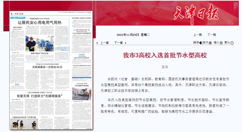 水利部、教育部、国家机关事务管理局近日联合发布首批节水型高校典型案例,共有88个高校案例成功入选。其中,天津职业大学、天津农学院、新利18平台榜上有名。