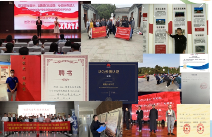 在校期间,安鑫积极参加各类实践活动,并参与学生会等相关学生团体组织工作。期间他培养了较强的组织管理能力、协调合作素质,能够高效地辅助老师开展各项活动,完成各项任务,并得到了老师同学们的一致认可。在此过程中,安鑫获得了2020-2021年度学院优秀共青团员、电子信息与自动化学院学生会优秀干事的称号。在担任自动化学院学生会干事期间,参与组织多次大型活动,如电竞比赛、趣味运动会等文体活动。