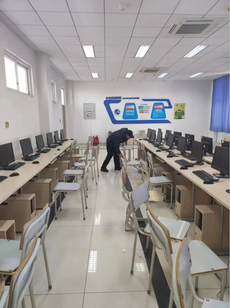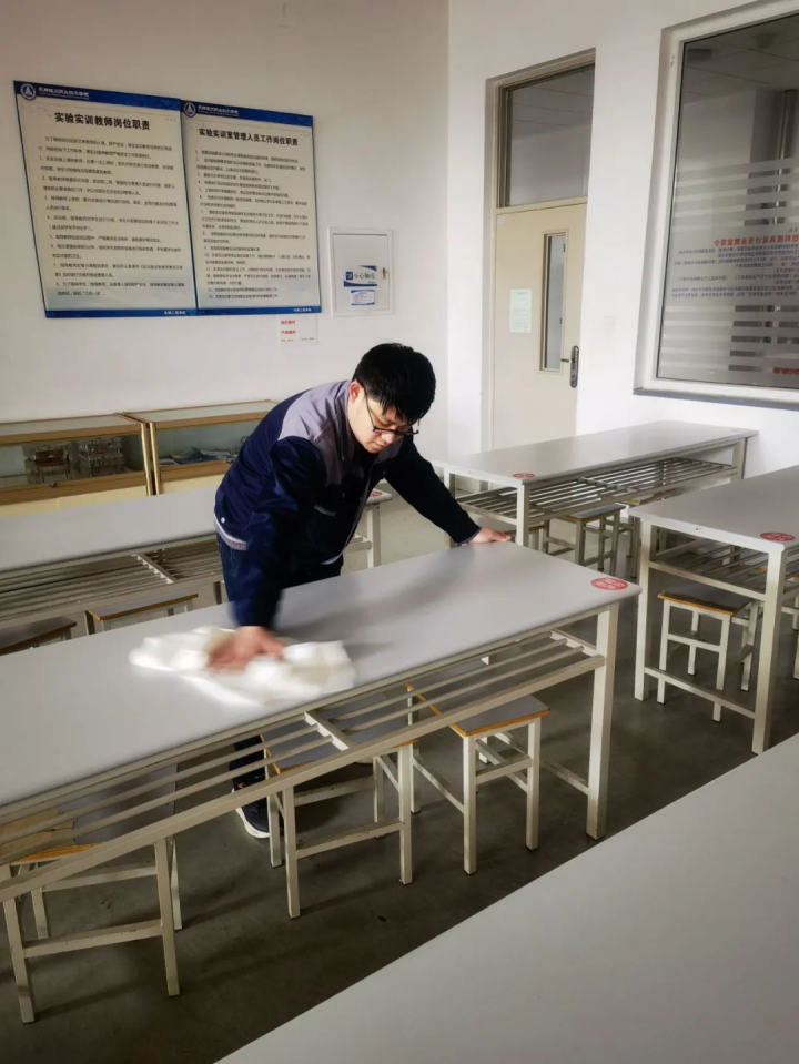 严格按照卫生消毒要求,对实训器材、走廊地面、教室、实训室等进行了大扫除,做到细致、到位、无死角、无盲点。