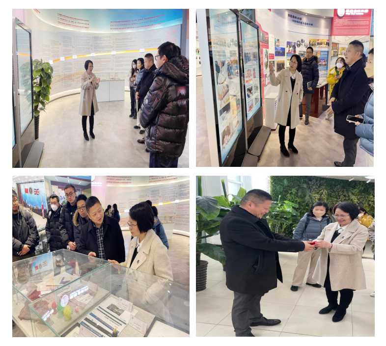 随后,院长李云梅陪同来访人员参观了鲁班工坊建设•体验馆,详细讲解了鲁班工坊建设缘起、内涵和建设过程中的重要节点与标志性成果,介绍了天津职业教育在国际化方面取得的成效,分享了我院牵头建设的印度、埃及鲁班工坊的建设及运行模式,并向中国工业合作协会产业与职教专委会秘书长刘泳印赠送了《鲁班工坊建设发展概览》等书籍和鲁班工坊纪念徽章。