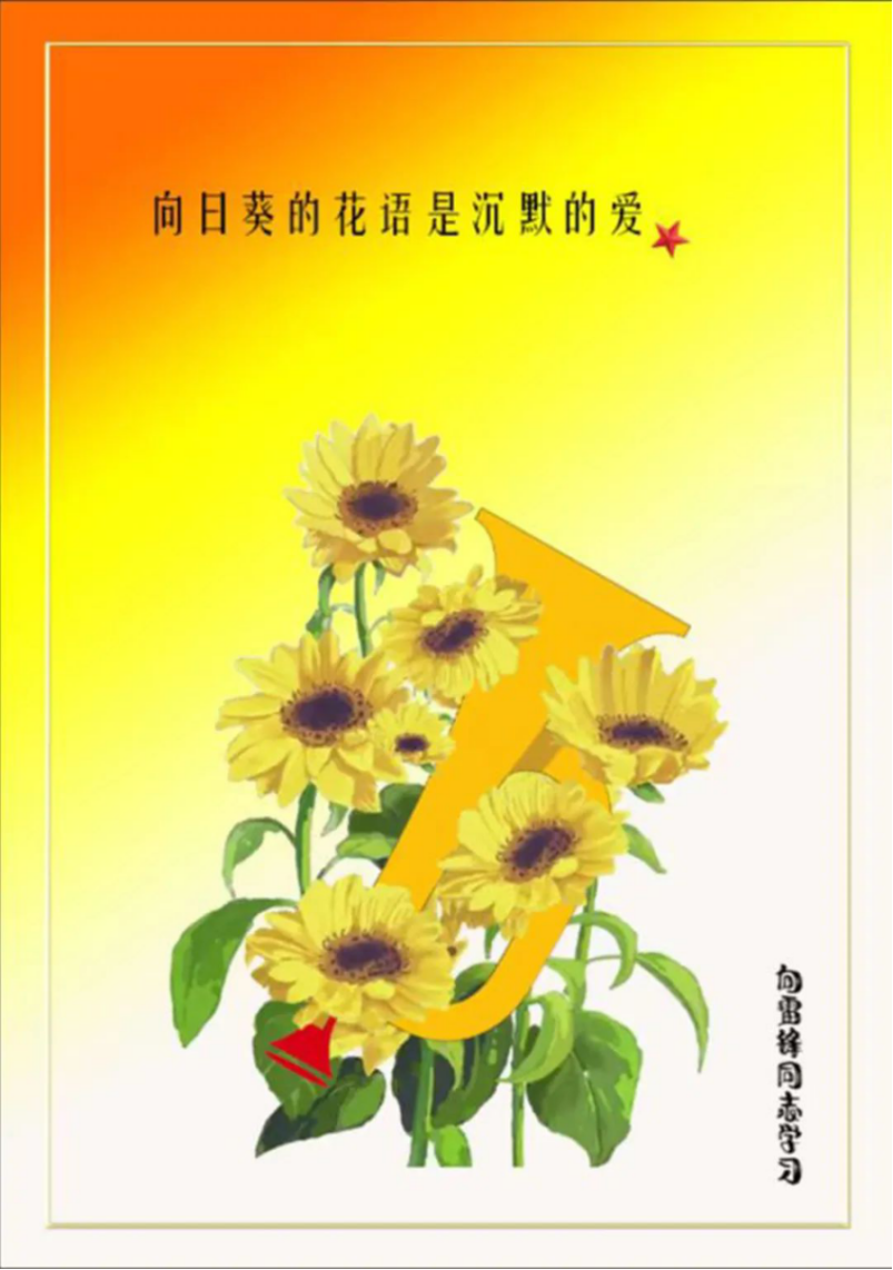 在海报设计中,作品整体配色采用了红色为主色调突出红色精神主题,在画面的视觉中心搭配上代表着“雷锋精神”的“雷锋帽”,形似默默无闻、无私奉献、充满泥土的大花盆,我们这些人民的“小花朵”在祖国的大地上汲取着来自这默默奉献着的花盆里的养分。作品以简单的形式突出主题,不管历史如何变迁,雷锋精神依旧在我们身上延续下去。