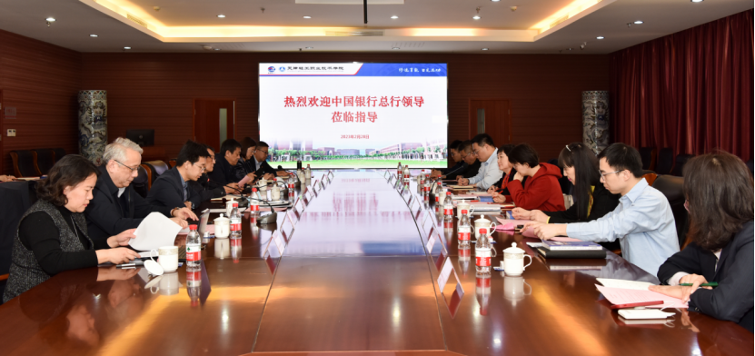 2023年2月28日,中国银行总行行政事业机构部首席客户经理王海燕一行3人来我院考察调研鲁班工坊项目建设工作情况,市教委二级巡视员陈长征、职业教育处处长李力,中国银行天津市分行、西青支行有关负责同志,我院党委书记戴裕崴、副院长于洪祥、副院长刘悦凌及相关部门负责人陪同调研。