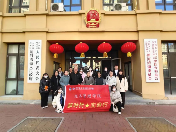 2023年3月1日,经济管理学院党总支书记白洁带领师生一行16人来到蓟州区州河湾镇进行调研考察,与州河湾镇党委书记王洪涛、党委副书记王丽莉,招商办主任刘振兴及相关工作人员进行了深入交流。