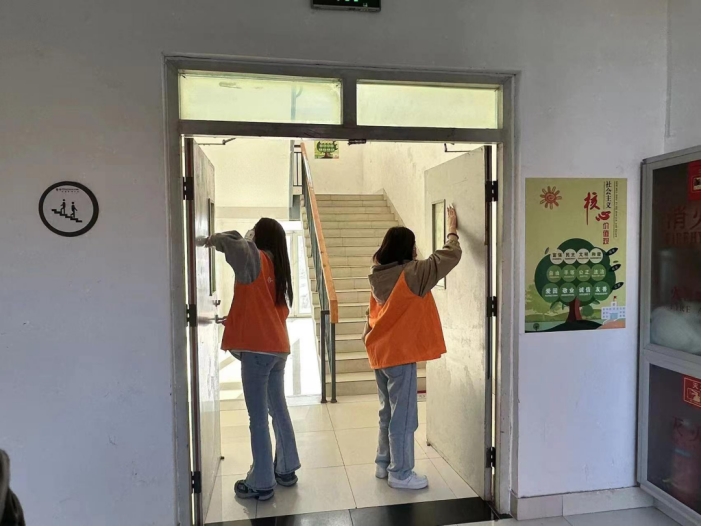 在活动中,一部分志愿者们都拿着扫帚、垃圾袋等工具,分段分人有序开展。一部分志愿者负责部分教室卫生,认真仔细的清理着每一处,将教室打扫的一尘不染。