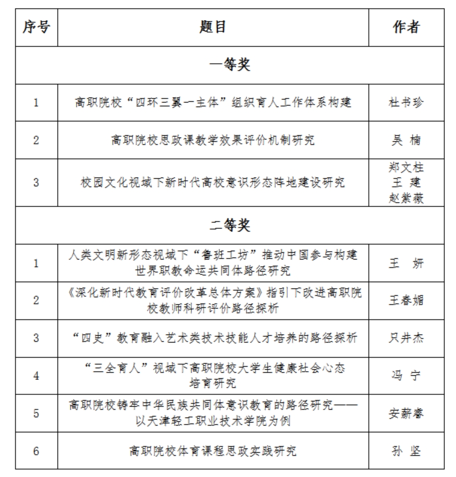 新利18平台全国高职高专党委书记论坛2022年论文征集活动获奖名单