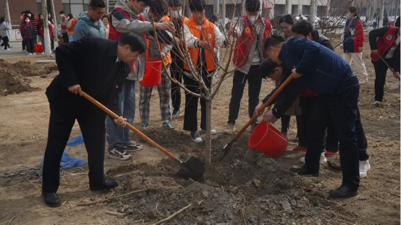 在整个活动过程中,学生们干劲十足,挖坑、放苗、培土、整平、浇水,用自己的双手为学院播种绿意。学院领导和辅导员老师们也加入到了植树的队伍当中。院领导们表示种下一棵树苗就是播种一份希望,希望此次的植树节活动,能够在学生心中播撒下生态文明的种子,让同学们都能树立爱绿植绿护绿意识,共同打造美丽轻工。