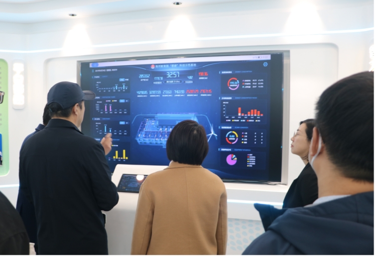 在基地的展厅中,集中监控平台展示了“零碳”基地从能源生产、测算到调节、消费全生命周期的能源数据,体现了基地能源管的数据化、精准化、可控化。
