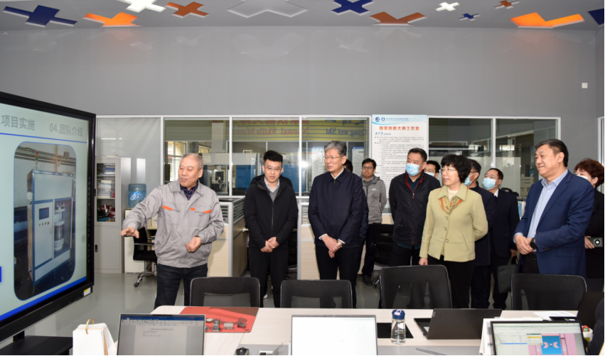 李虹副主任一行参观了模具产业学院、精密模具协同创新研发中心、精密测量实训室、史清卫国家级技能大师工作室,听取了渤轻集团张书记介绍集团行业办学情况、取得的成果以及在产教融合方面遇到的问题及建议,调研了学院校企合作、产教融合情况,详细了解了学院办学体制、校企合作模式、人才培养等情况。