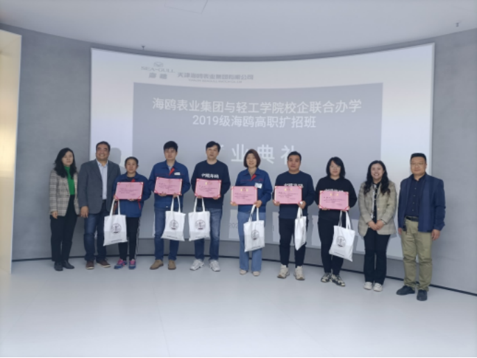 |   为深入学习贯彻党的二十大精神,落实《关于深化现代职业教育体系建设改革的意见》《国家职业教育改革实施方案》《职业教育提质培优行动计划(2020—2023年)》和天津市“十项行动”等文件精神,进一步推进并深化我院与天津海鸥表业集团的战略合作,2023年4月13日,我院院长李云梅,副院长刘悦凌,机械工程学院、校企合作与培训部、教务部相关负责人一行10人赴天津海鸥表业集团走访调研并举行海鸥集团39名百万扩招学生毕业典礼。天津海鸥表业集团党委书记、副总经理王钢,全国技术能手、国家级技能大师李家琦出席毕业典礼。