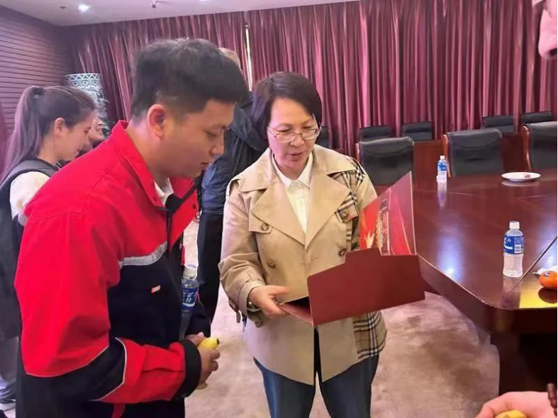 李云梅院长代表学校首先为大家送去节日的问候。首先要立足岗位和训练,在工作中传递劳动光荣、技能宝贵、创造伟大的时代赋予职业人的使命和责任;其次大家相聚轻工,就是一家人,无论中外、南北,我们都是轻工人,要秉承轻工“修德育能、日见其功”的校训,不断前行;最后勉励大家都要弘扬主旋律,传递正能量,要把增强对家乡、对第二故乡——天津的浓厚情感作为涵养学生家国情怀的重要内容,自愿做天津文化的传承者、传播者,将来毕业后留在天津创业或就业。座谈结束,李院长为每个学生团队赠送学校自制的五四青年节礼物——轻工邮票。