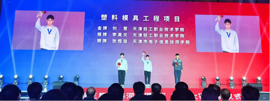 5月8日,第三届“海河工匠杯”技能大赛颁奖仪式在天津市职业技能公共实训中心举办,我校机械工程学院21级模具工程创新班刘慧、李昊天两名同学分别获得塑料模具工程项目的金、银奖牌。