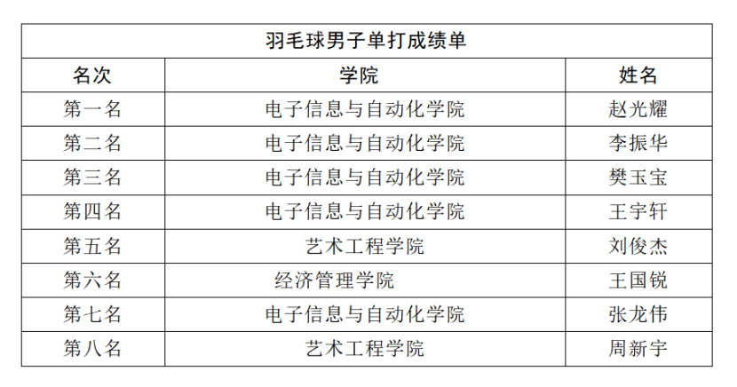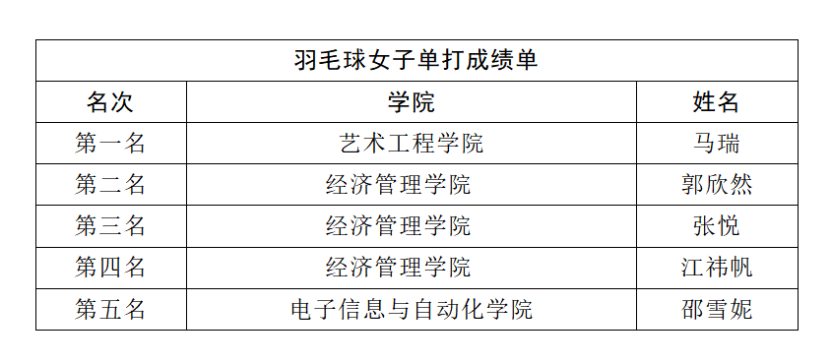 赛场上他们全身心投入比赛,将进攻与防守都体现的淋漓尽致,铆足了劲挥舞甩拍。场下观众时不时传出欢呼声和喝彩声。本次比赛设立男子单打和女子单打两个项目,小组赛采用一局15分制,决赛采用国际羽联最新21分制经过激烈的角逐,艺术工程系的马瑞一路过关斩将,获得了女子单打的冠军。男子单打冠军则是由自动化学院的赵光耀收入囊中,为本次比赛画上了圆满的句号。