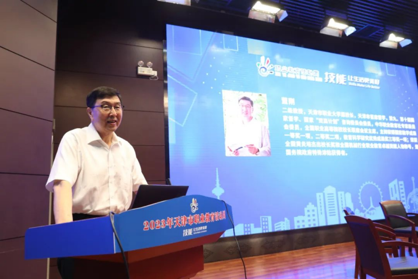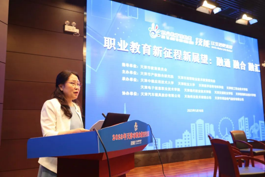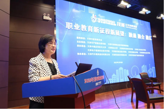 |   为全面学习贯彻习近平新时代中国特色社会主义思想,进一步落实党的二十大精神,落实中共中央办公厅、国务院办公厅印发的《关于深化现代职业教育体系建设改革的意见》和我市“十项行动”任务要求,由天津市教育委员会指导、天津市产教融合研究院与天津市高等职业技术教育研究会主办,由天津中德应用技术大学、天津职业大学、天津医学高等专科学校、新利18平台、天津电子信息职业技术学院、天津现代职业技术学院、天津交通职业学院、天津渤海职业技术学院承办,由天津汽车模具股份有限公司、天津市鸿远电气股份有限公司、天地伟业技术有限公司协办,于5月16日在新利18平台联合举办了“职业教育新征程新展望:融通 融合 融汇”研讨。研讨会由天津市教科院职业教育研究中心耿洁主任主持。