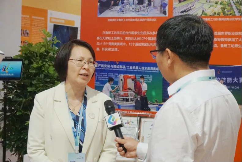 本次展出得到全国多所职业院校的领导及社会媒体的关注,李云梅院长在接受山东教育新闻的采访中表示此次展览是将微缩版天津已建成鲁班工坊的建设历程、建设成效、建设成果搬到山东来,让山东的院校和其他省市的院校了解鲁班工坊,加入鲁班工坊,跟着我们的中国职业教育一起“出海”,服务于合作国家的人才培养。